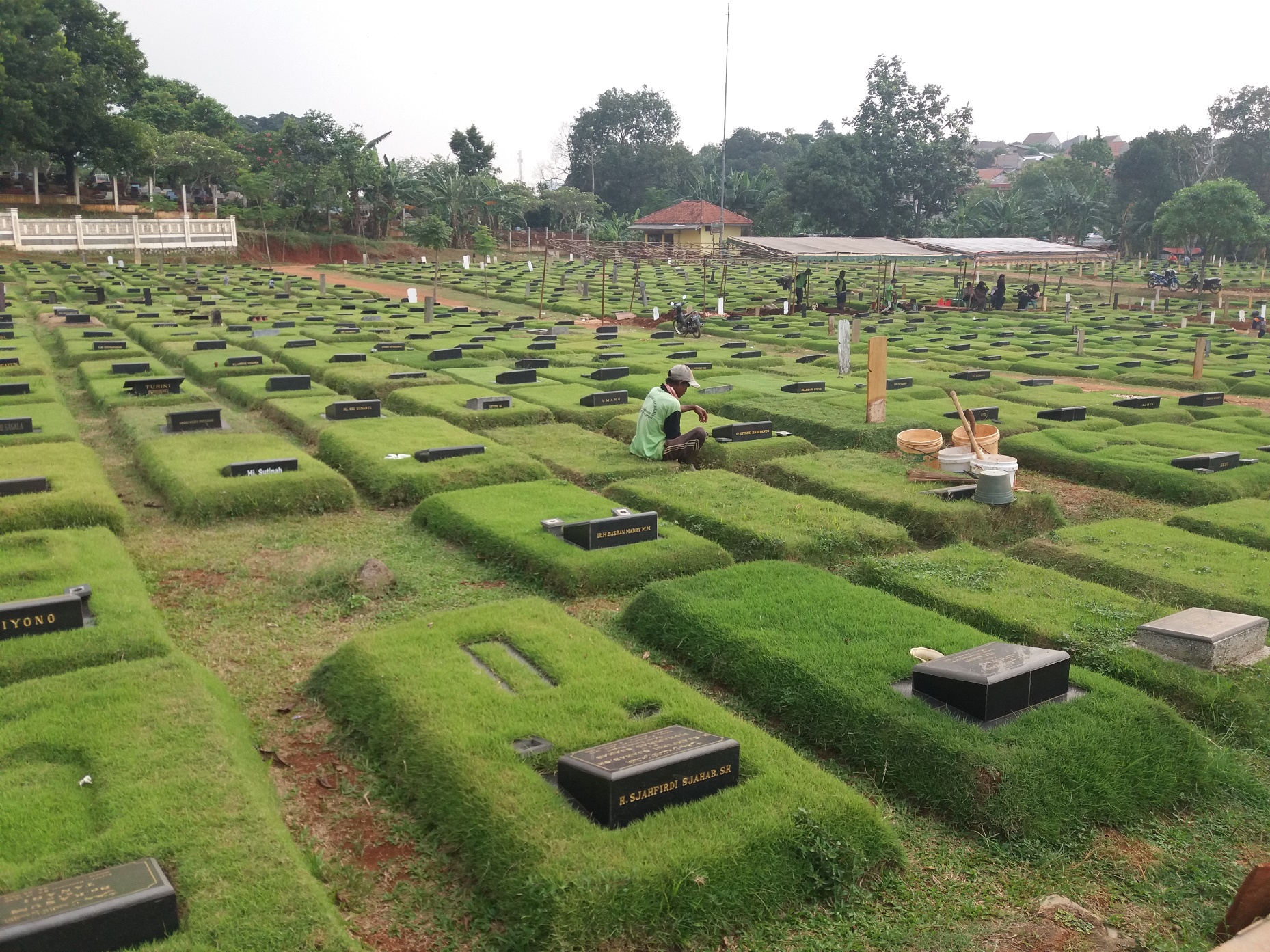 Makam Hijau Posted on 20 September 2017 by izal Seorang petugas makam umum di Jakarta membersihkan makam di Jakarta Selatan. Pemerintah Jakarta menetapkan peraturan makam tidak boleh disemen namun harus diberikan rumput