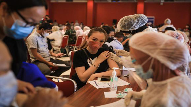 Pemerintah menggencarkan capaian vaksinasi untuk mengurangi dampak sebaran Covid-19 yang belakangan kembali merangkak naik. Masyarakat juga diminta kembali memperketat protokol kesehatan Covid-19.